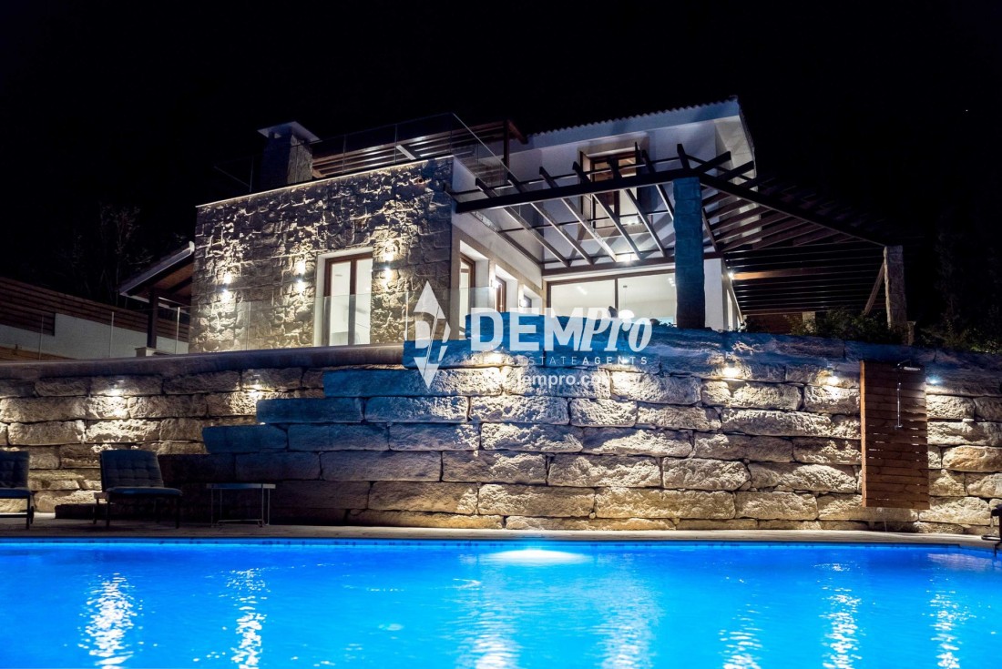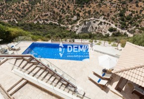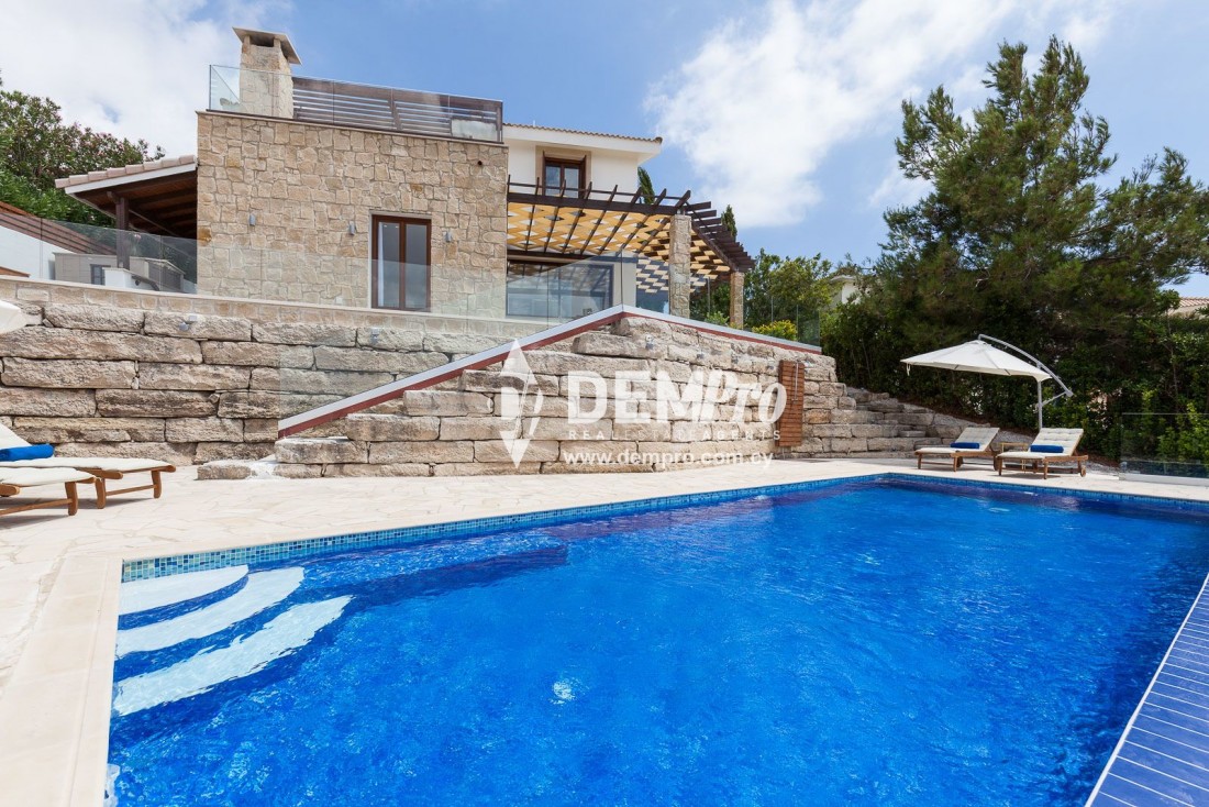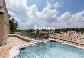 This delightful property is a newly completed detached villa on the East Plateau at Aphrodite Hills. The villa has four bedrooms and five bath/shower rooms and with so many additional features would make an extremely popular rental property. The villa, which is on a tiered plot, over looks the central ravine of the Resort with sea and sunset views to the side. The property has a generous front garden and ample parking for several cars with sensor lighting.